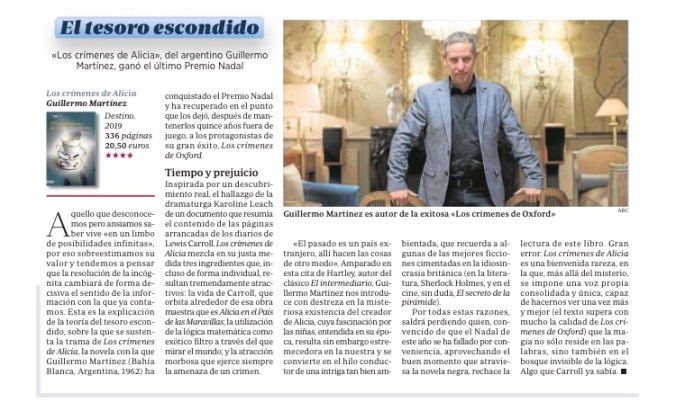«El pasado es un país extranjero, allí hacen las cosas de otro modo». Cuando leí esta cita de Hartley en la novela de Guillermo Martínez Los crímenes de Alicia (Premio Nadal 2019) supe que no la olvidaría, de la misma manera en que la novela entera me pareció una de esas historias que vuelven a la mente tiempo después de haber sido escuchadas o leídas, para recordarnos el aroma de un universo propio, al que fuimos invitados y que nos gustó visitar.